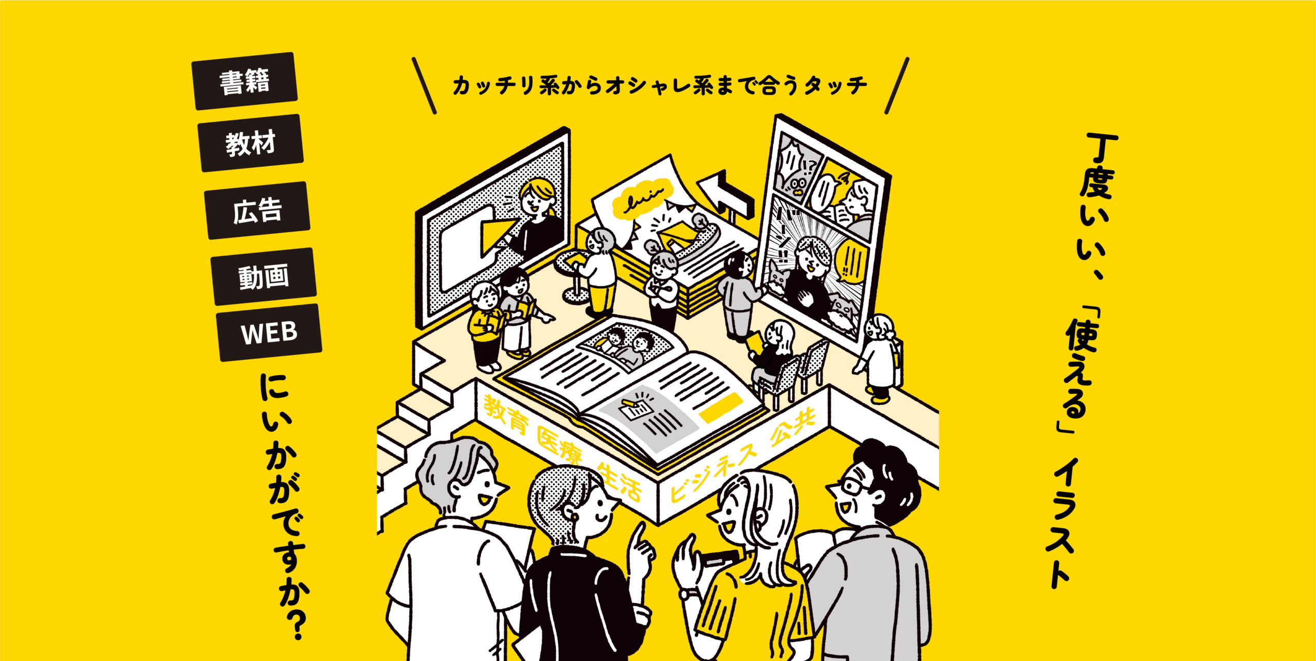 教員としての経験を生かし情報やサービスを「伝える」お手伝いをします。幅広い媒体にご利用いただきやすいシンプルで温かみのある人物描写が得意です。