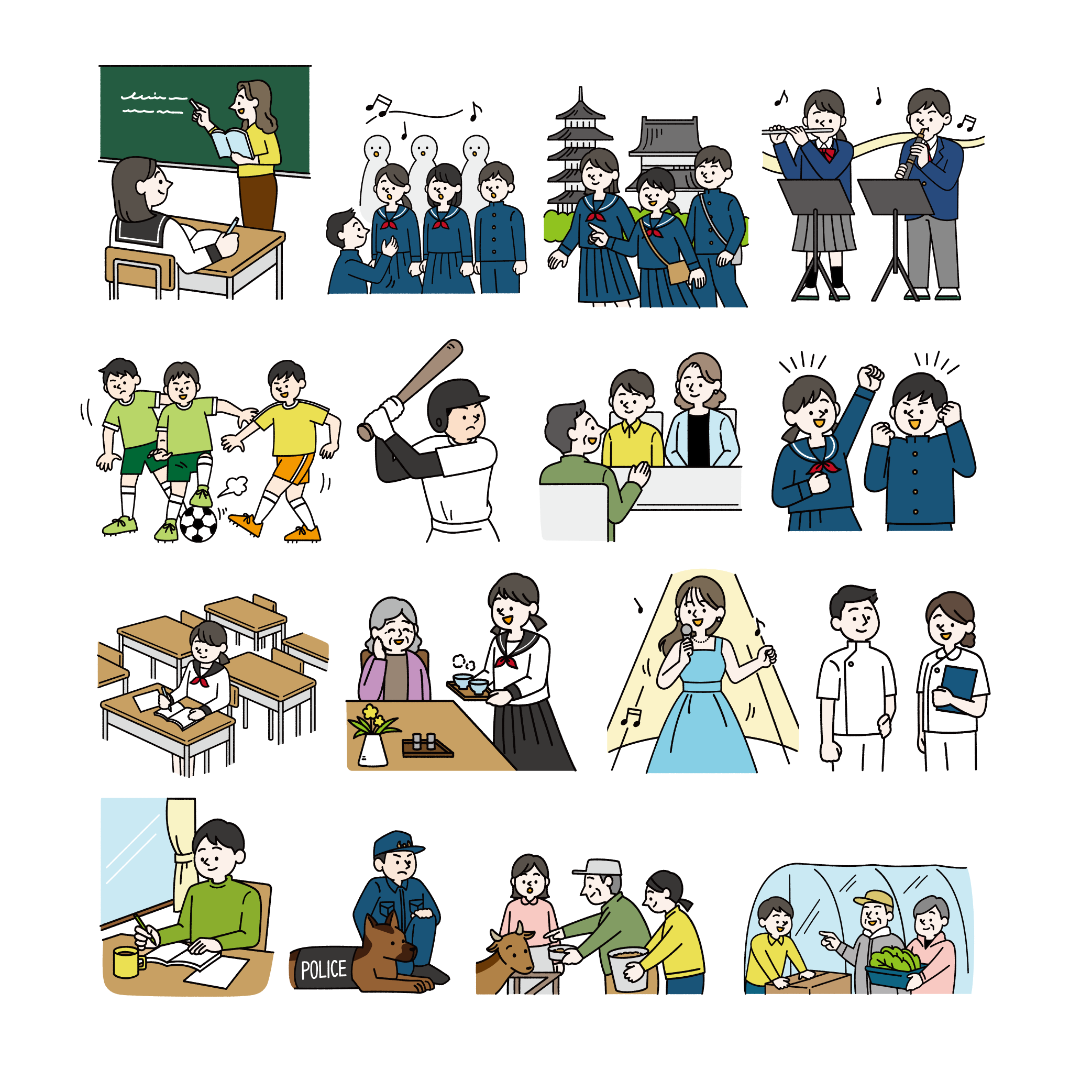 ホームWorks [教材挿絵]中学生活と進路 沖縄県版、神奈川県版/日本之実業社 2024.04.162025.01.10 2024年度用 中学生活と進路 沖縄県版、神奈川県版発行:日本之実業社担当:本文イラスト 53点こちらの本文イラストの一部分を担当しました。【使用ツール:Adobe illustrator】▶︎他のイラストサンプルはこちら ▶︎制作実績はこちらイラスト制作のお見積もりやご相談はこちらからお気軽にお問い合わせ下さい! コメントを残す コメントをキャンセルメールアドレスが公開されることはありません。 ※ が付いている欄は必須項目ですコメント ※ 名前 ※ メール ※ サイト 次回のコメントで使用するためブラウザーに自分の名前、メールアドレス、サイトを保存する。 Δ